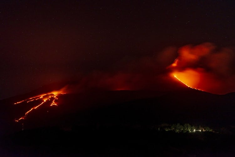 2 bin 980 ile 3 bin 200 metre rakım arasındaki üç ayrı bacadan lav püskürmeye devam ediyor. Bocca Nuova ile Güneydoğu krateri arasındaki yamaçlarda birden fazla lav akıntısı gözlenirken, bunlardan en uzunu 2 kilometreyi buldu.